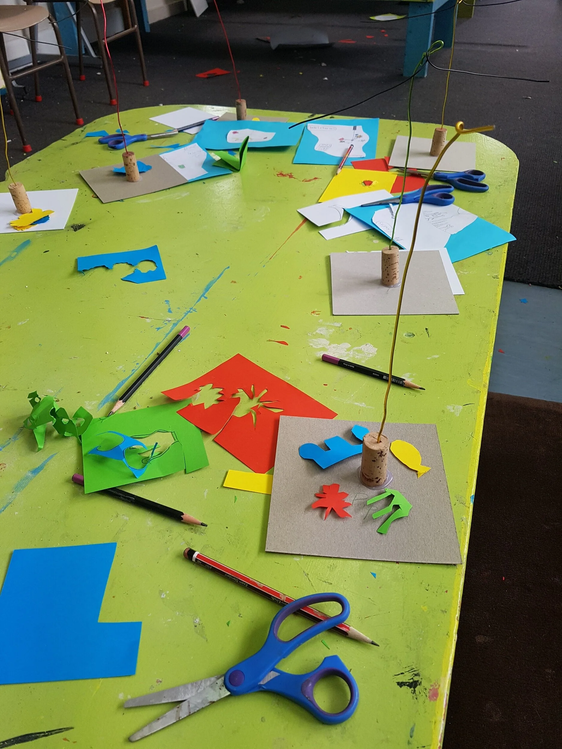 The students learnt that Alexander Calder invented the mobile and that he made many floating structures inspired by shapes in nature. Before starting their own mobiles the students made sketches to plan out their designs and think about how they would get their structures to balance. I loved the range of different designs that the students came up with, they were truly inspired by nature in their planning. The ideas included the solar system, space, fruit growing on trees, deconstructed flowers, leaves and sea shells.
