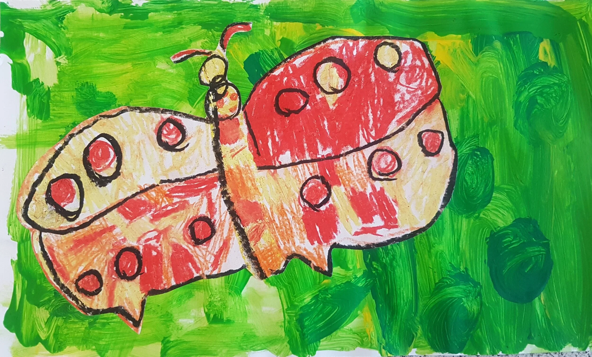 The students had a blast painting the grassy backgrounds for their butterflies to go on. After modelling how to blend paint on the paper, I gave the students green and yellow paint and let them get creative! It was interesting watching the various painting techniques that the students tried. Some did dabs, others did large swirls while others did twists with their brushes.