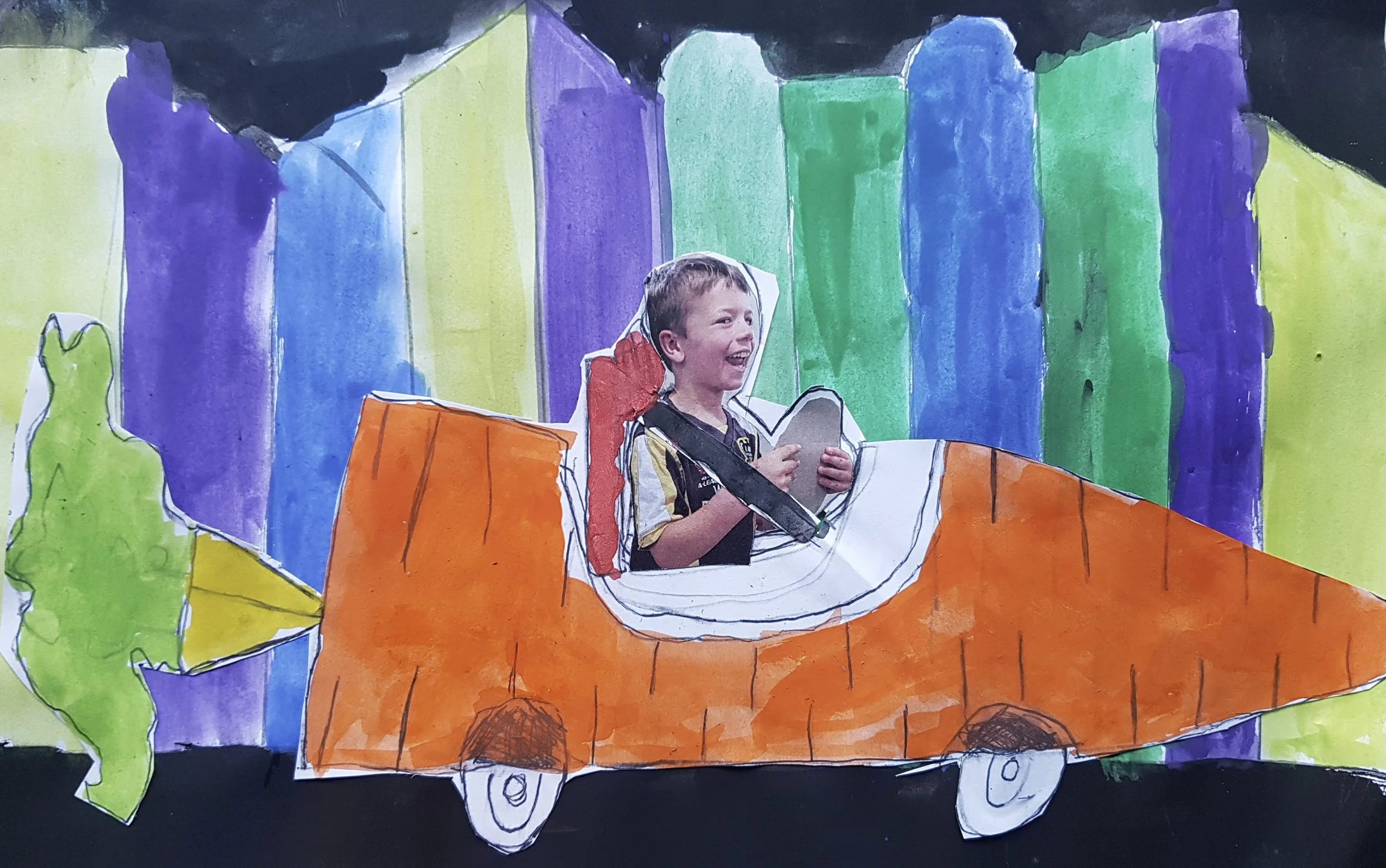 Today was my last lesson in the art room before two weeks of school holidays. Karli’s class spent the day with me making super creative vehicles based on the illustrative style of Richard Scarry. The students branched out and used many different types of food as subjects for the vehicles, some even combining food items to create very unique vehicles. I was impressed at how well the students closely observed artworks to find details to use in their own artworks.